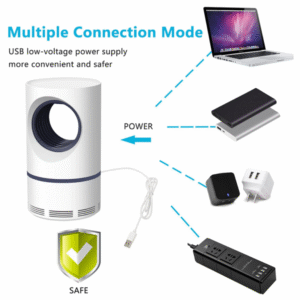 The UV Lamp Mosquito Killer uses safe and silent technology to effectively trap mosquitoes and small flying insects. The UV LED light attracts insects while the built-in suction fan pulls them in — no smell, no chemicals, and no danger to kids or pets.